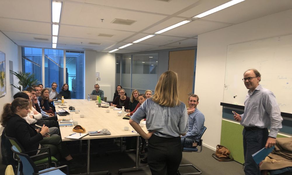 Op vrijdag 2 november waren de trainees welkom bij het ministerie van Onderwijs, Cultuur en Wetenschap. Jan Andries Wolthuis, afdelingshoofd kwaliteit en professionalisering voortgezet onderwijs bij het Ministerie van OCW, nam de groep mee in de totstandkoming van onderwijsbeleid en belangrijke punten op de Lerarenagenda.